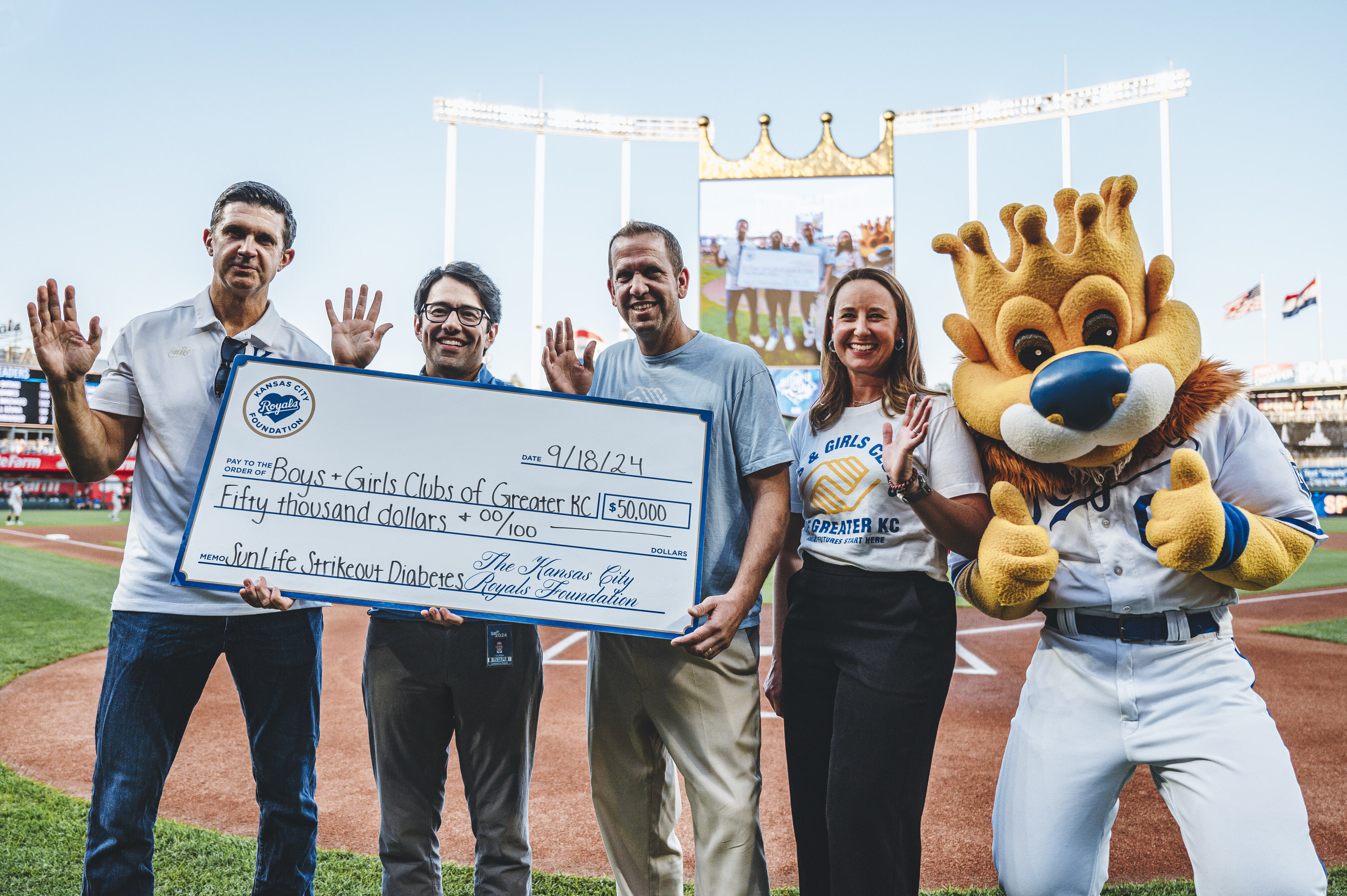 KANSAS CITY, Mo., Sept. 23, 2024 /PRNewswire/ -- Sun Life U.S. has teamed up for the seventh year with The Kansas City Royals Foundation for "#StrikeoutDiabetes," which supports local community organizations helping people manage their health and avoid type 2 diabetes. This year Sun Life and the Royals raised money for the Boys and Girls Clubs of Greater Kansas City. With strong performances on the mound from Seth Lugo, Michael Wacha and Cole Ragans, Royals pitching raised $50,000, which was presented to the Boys and Girls Clubs at Wednesday night's game against the Detroit Tigers.